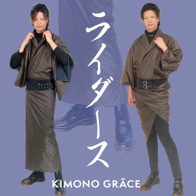 話題のありすぎたレザー着物、ライダース衿に魔改造され新発表! 今年のテーマは【可愛いも作れる】。 スタイリッシュの塊だった前回と違いフェミニンなコーデも可能になりました。 スタイリッシュさとエレガントさ、上品にも悪的にも、ロックにもパンクにも、、、 コーディネートで様々なスタイリングができるフェイクレザーの着物。 デニムキモノ、ジャージキモノのその先を狙い、よりカジュアルの深みへ。 無地なのにディティールに拘ったキモノグラースらしい個性的でカッコいい着物です。 メンズ・レディースあります。 見た目からは想像できない薄手のフェイクレザー生地で、しなやかで若干のとろみ感もあり着姿がきれいに決まりやすい。軽いのにストンと裾が落ち、スタイリッシュな着姿の演出が可能す。 型崩れがしにくく、扱いやすいのでカジュアルなお出かけや旅行などにもおすすめです。 拘りのライダース衿は後付けではなく、一反の反物から縫製しております。立たせてもよし、寝かせてもよし、開いても狭めても...特に意味はありませんが話題となります! 水洗い可能な素材で汚れを気にせず着用頂けます。 胸元には縦付けした機能的なインポケットファスナーを。袖にはなんと非機能極まりない開けてもなんの意味もないファスナーをデザイン。インナーが見えるだけですがこの遊び心が欲しかった!KBlueにはゴールド、mocaにはアンティークブロンズのファスナーを採用。この為にYKK様に制作頂きました。 ※衿の抜き方や体系により胸のポケットのバランスは変わります。 伸縮性もあり、風を通さないフェイクレザーキモノで本当に気楽にコーディネートを楽しんでいただけます。半巾でも兵児帯でも、名古屋帯でも袋帯でもベルトでも、、ロングジャケットを羽織る感覚で正解なんかない自分だけの着姿を作り上げて下さい。 ※素材感と形状でライダースとしておりますが、本来のライダースジャケットとは安全性が異なります。ご注意ください。 ◉KBlueはこちら https://kimonograce.thebase.in/items/134462955 ◉レディースはこちら(moca) https://kimonograce.thebase.in/items/134462425 ◉マッドブラックはこちら(通常衿) https://kimonograce.thebase.in/items/94529439 ◉生地感が分かる動画は公式インスタにて https://www.instagram.com/reel/DVLak3JEvRb/?igsh=cmcxdzduamxseGxw 種類:単衣着物 プレタ(仕立て上がり) 柄:フェイクレザー粗目 色:moca(モカ) 素材:表 ポリウレタン100% グランド ポリエステル100% サイズ: メンズM (着丈146cm)・・・身長170cm前後 身丈(背)3尺8寸5分(146.0cm) 裄 1尺9寸 (72.0cm) 袖丈 1尺3寸 (49.0cm) 袖幅 9寸8分(37.0cm) 袖付 1尺1寸 (42.0cm) 前幅 6寸9分(26.0cm) 後幅 8寸4分(32.0cm) 衿下 1尺9寸2分(73.0cm) メンズL(着丈150cm)・・・身長175cm前後 身丈(背)3尺9寸7分(150.0cm) 裄 1尺9寸8分(75.0cm) 袖丈 1尺3寸5分(51.0cm) 袖幅 1尺 3分(39.0cm) 袖付 1尺1寸 (42.0cm) 前幅 6寸9分(26.0cm) 後幅 8寸4分(32.0cm) 衿下 1尺9寸8分(75.0cm) ※サイズは多少の誤差が生じる場合があります。 着丈が長い場合は帯下に織り込んで着用ください。着丈が短い場合はブーツ等で調整してください。 お手入れ:水洗い手洗い。あて布アイロン可。スチームアイロン不可 発送:福山通運 送料:無料 【発送時期について】 商品注文後2営業日以内の発送 【返品交換キャンセル】 商品がお手元に届きましたら、すぐにご確認下さい。 万が一お届けした商品が注文と違っている場合は、商品お届け後7日以内にご連絡下さい。交換させて頂きます。 ●交換品がご用意できない場合は返金とさせていただきますので予めご了承下さいませ。 お届けした商品が不良品だった場合や、配送中の事故等で壊れていた場合は商品お届け後7日以内にご連絡下さい。 返送料当社負担にて返品をお受け致します。 ●交換をご希望される場合、交換品がご用意できる場合に限り交換させて頂きます。 交換品がご用意できない場合は返金とさせていただきますので予めご了承下さいませ。 【以下の場合にはご返品・交換をお受けできません】 ・お客様がご使用になられた商品の場合 ・お客様が汚損・破損された商品の場合 ・お客様が試着等で汚された商品の場合 ・お届け後、修理、クリーニング等された場合 〈返品送料〉 お客様の都合による返品の場合は、返送料をお客様にご負担いただきますのでご了承ください。 お届けした商品が注文と違っていた又は、不良品の場合の返品は返送料は当社で負担致します。 ◎掲載画像で着物以外の帯や小物等は別売りまたは参考商品となります。 ◎なるべく実物に近い色を出すように努力しておりますが、表示画面の違いによって色が実物と微妙に異なる場合があります。 ◎実店舗でも同時に販売しておりますので、タイミングにより商品が欠品する場合がございます。 売り違いが発生した場合、ご購入をキャンセルとさせて頂きます。ご了承下さい。
