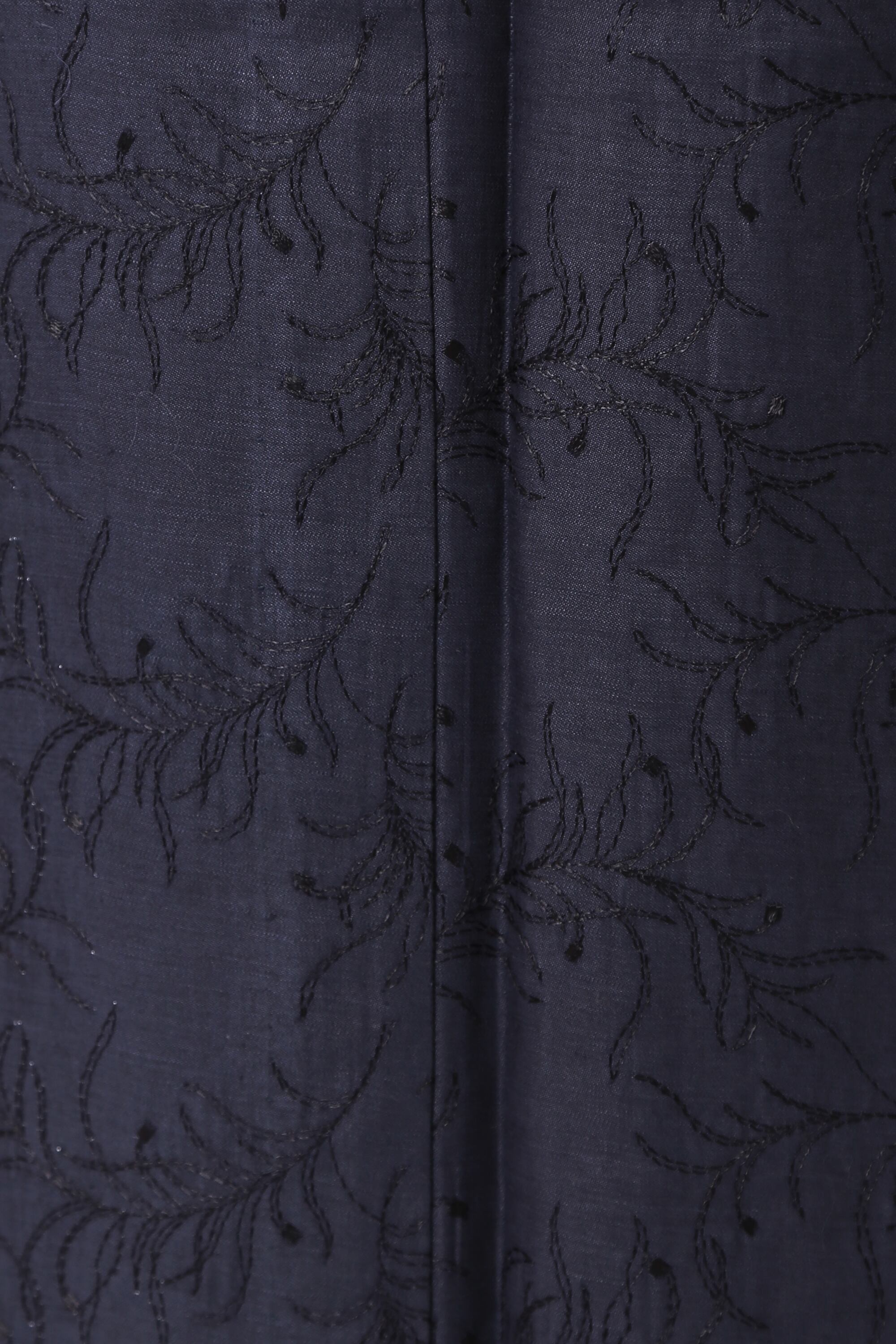 グラースオリジナル着物 リーフ刺繍 ネイビー 仕立て上がり 綿35%麻65% 5営業日以内発送