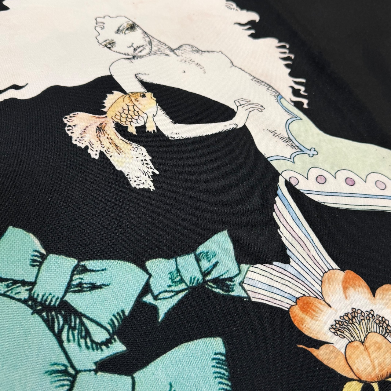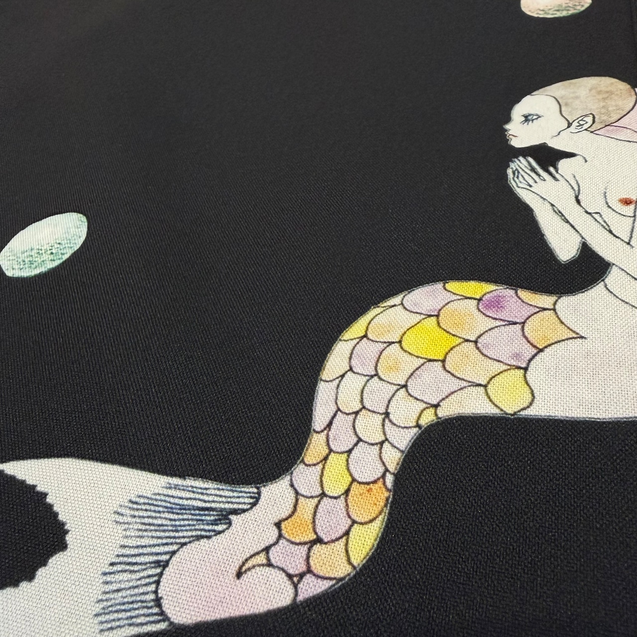 宇野亞喜良氏の不思議で妖艶でファンシーな世界観を着物として仕立て上げました。