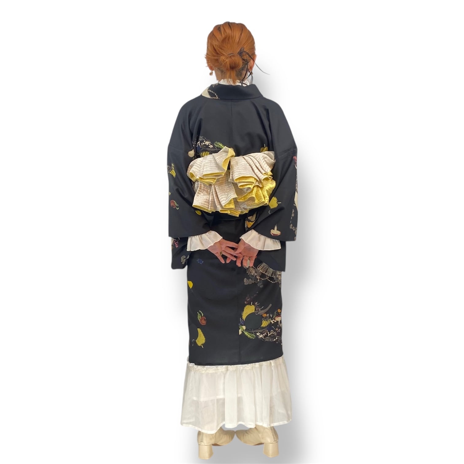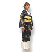 洒落袋帯でも、半巾帯でも名古屋帯でも兵児帯でも、さらには帯をしなくても。オシャレをしたい時に気楽に羽織れるキモノとして制作をしております。