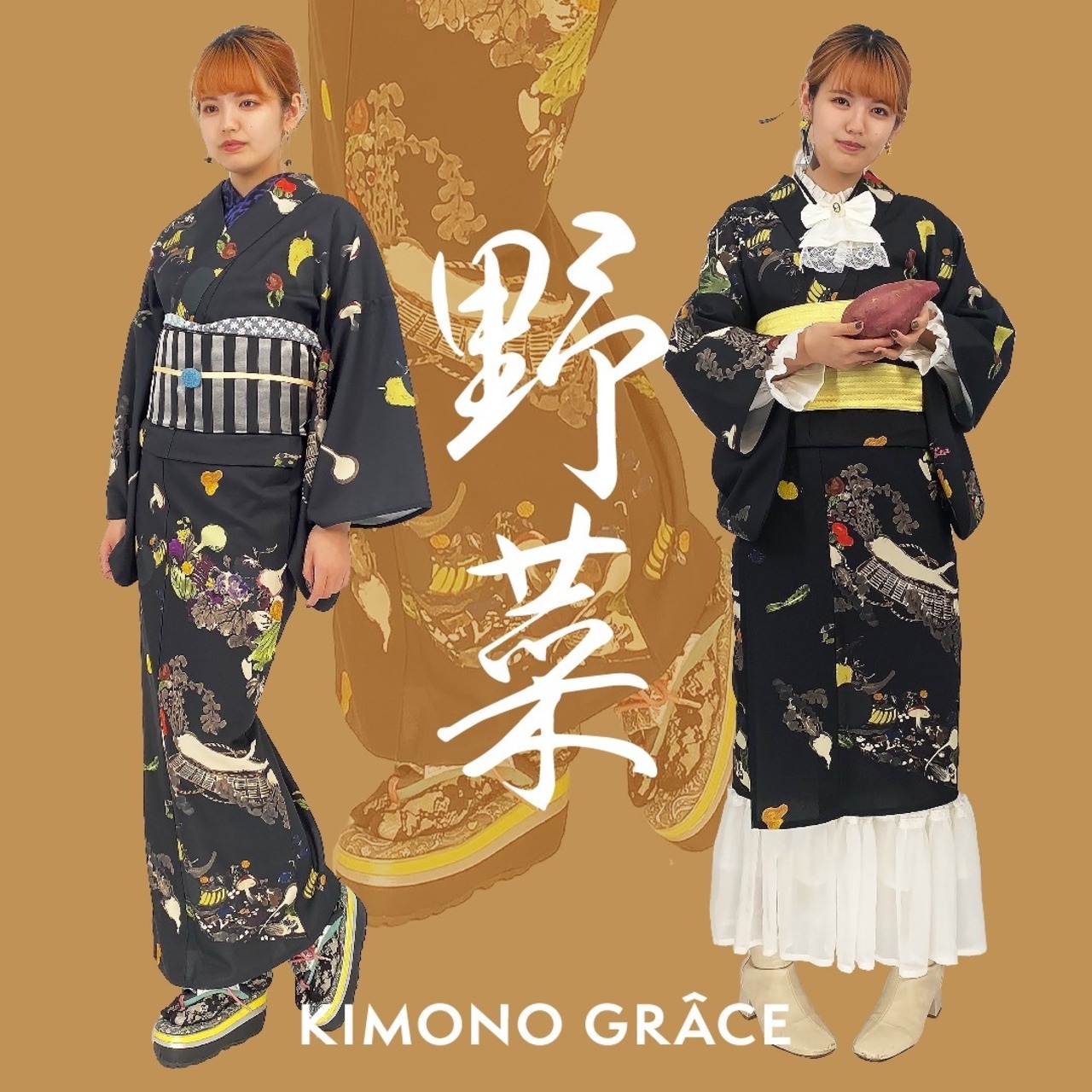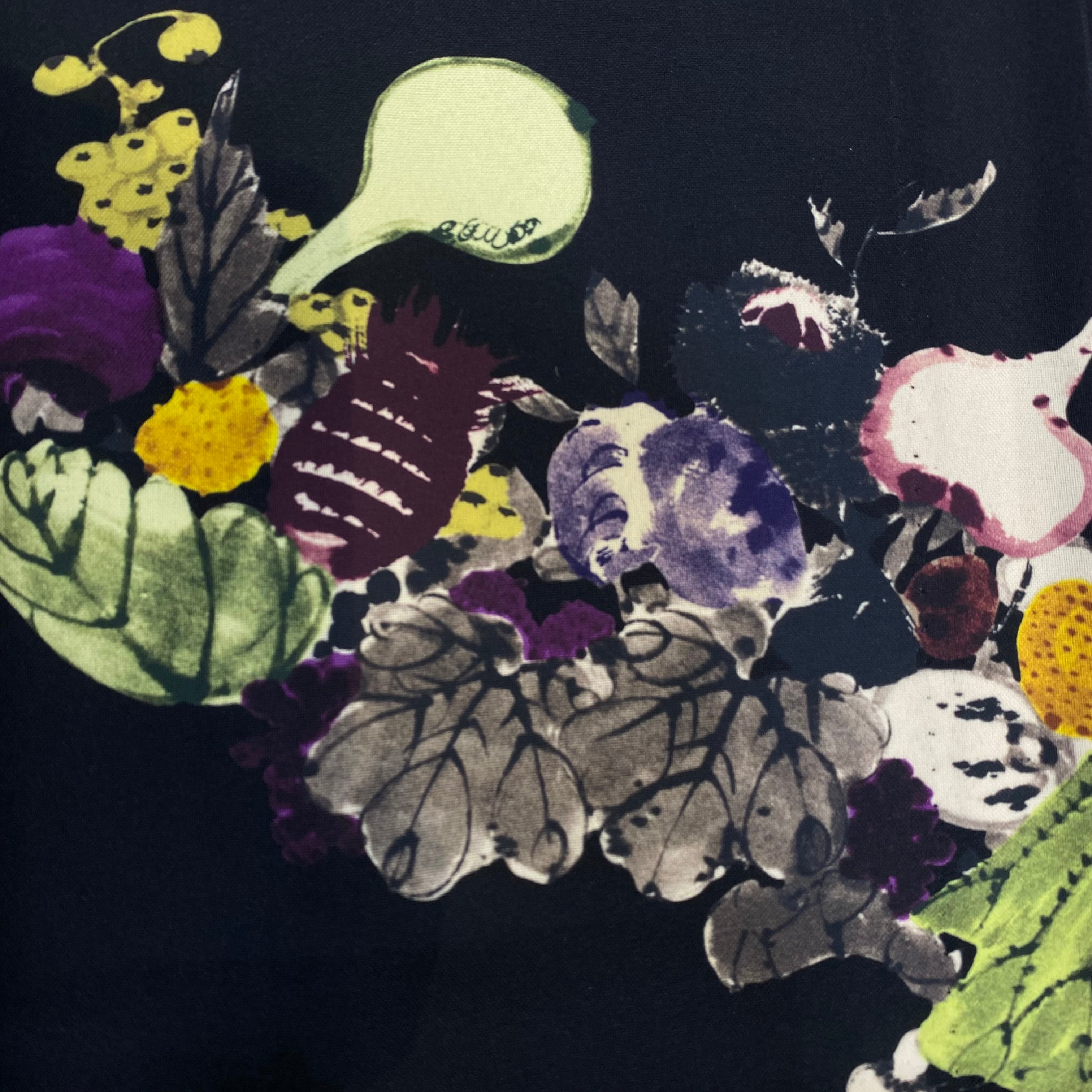 生命が宿った動きのある野菜がかわいい!「ザ・和」の雰囲気もありながら様々なコーディネートができるアートな1枚です。