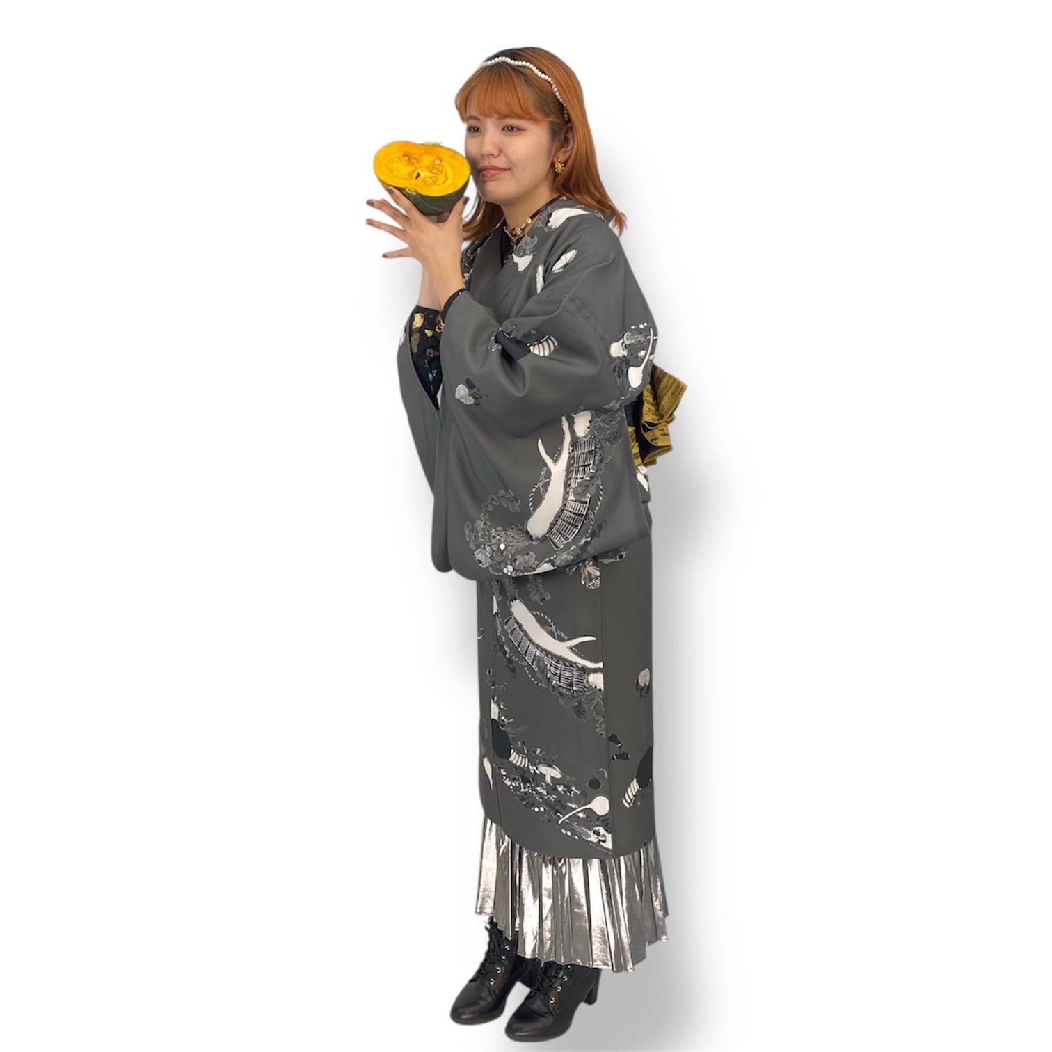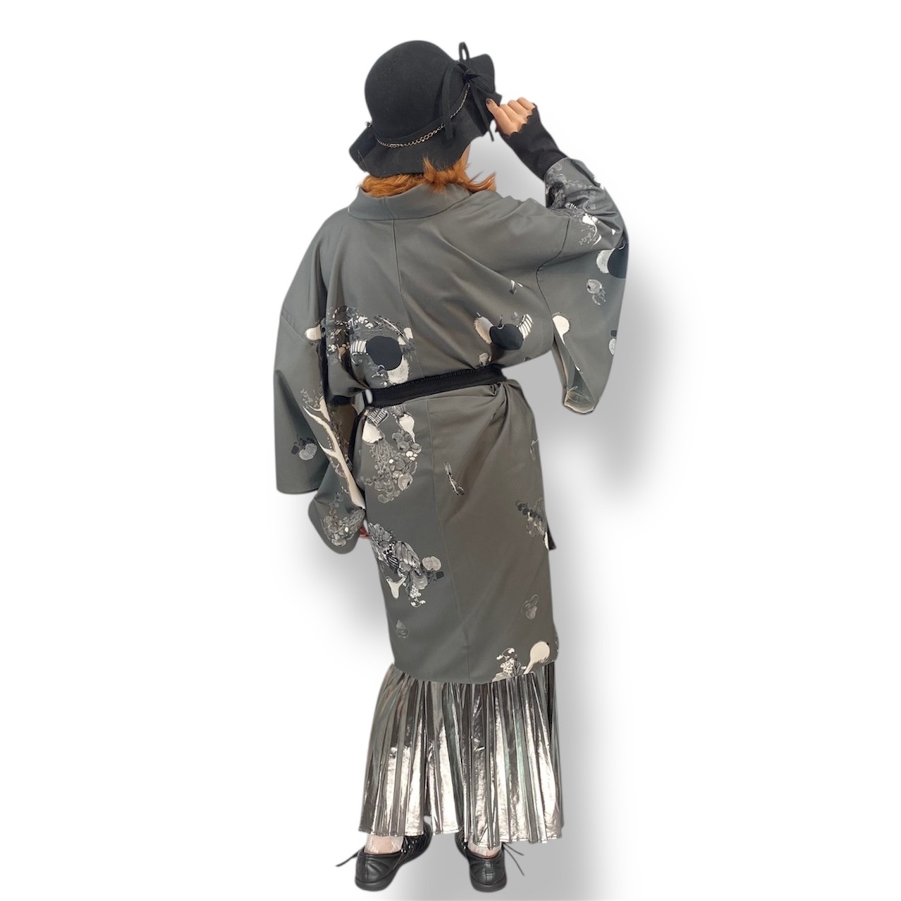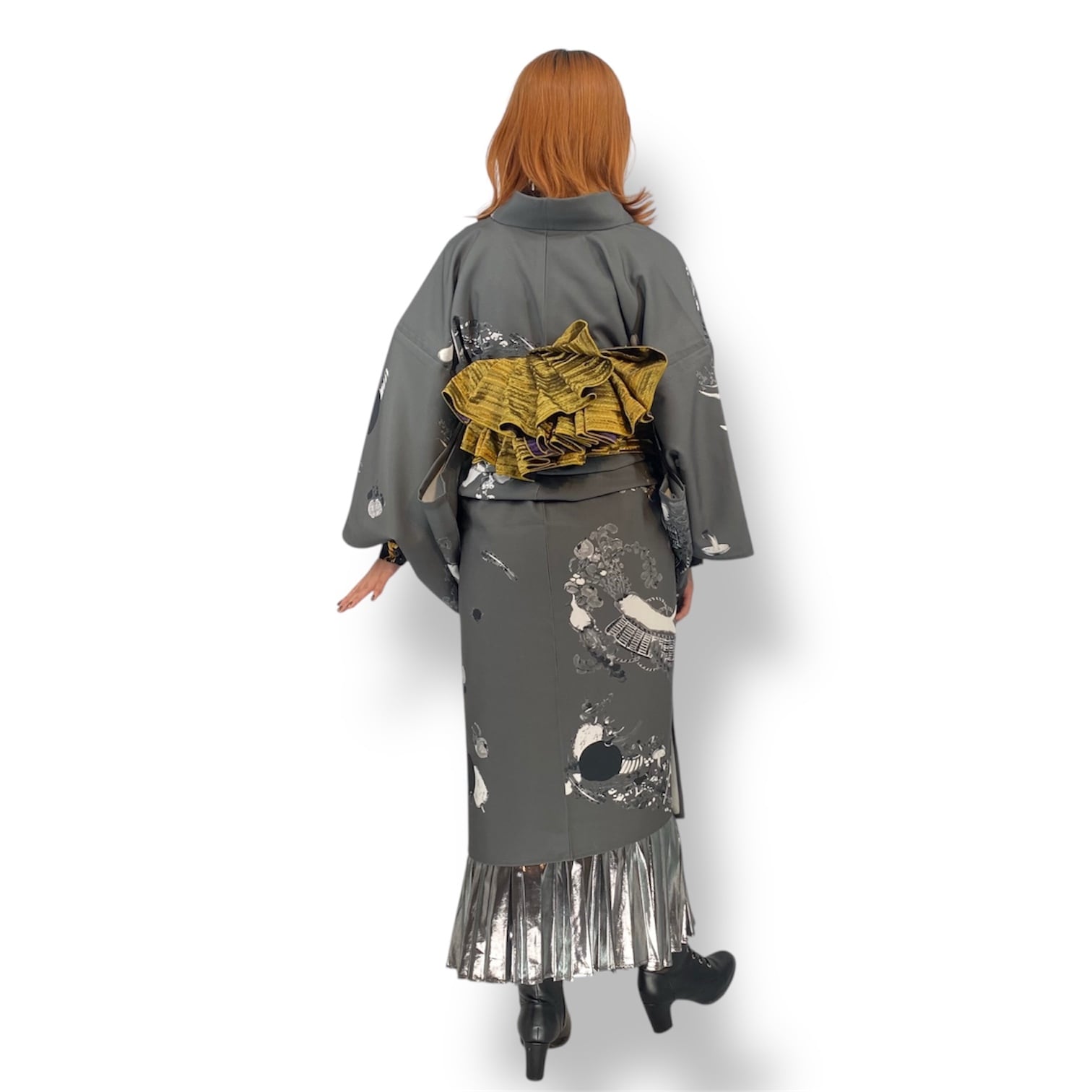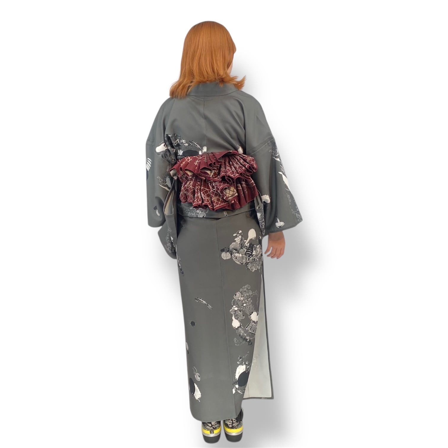 洒落袋帯でも、半巾帯でも名古屋帯でも兵児帯でも、さらには帯をしなくても。オシャレをしたい時に気楽に羽織れるキモノとして制作をしております。