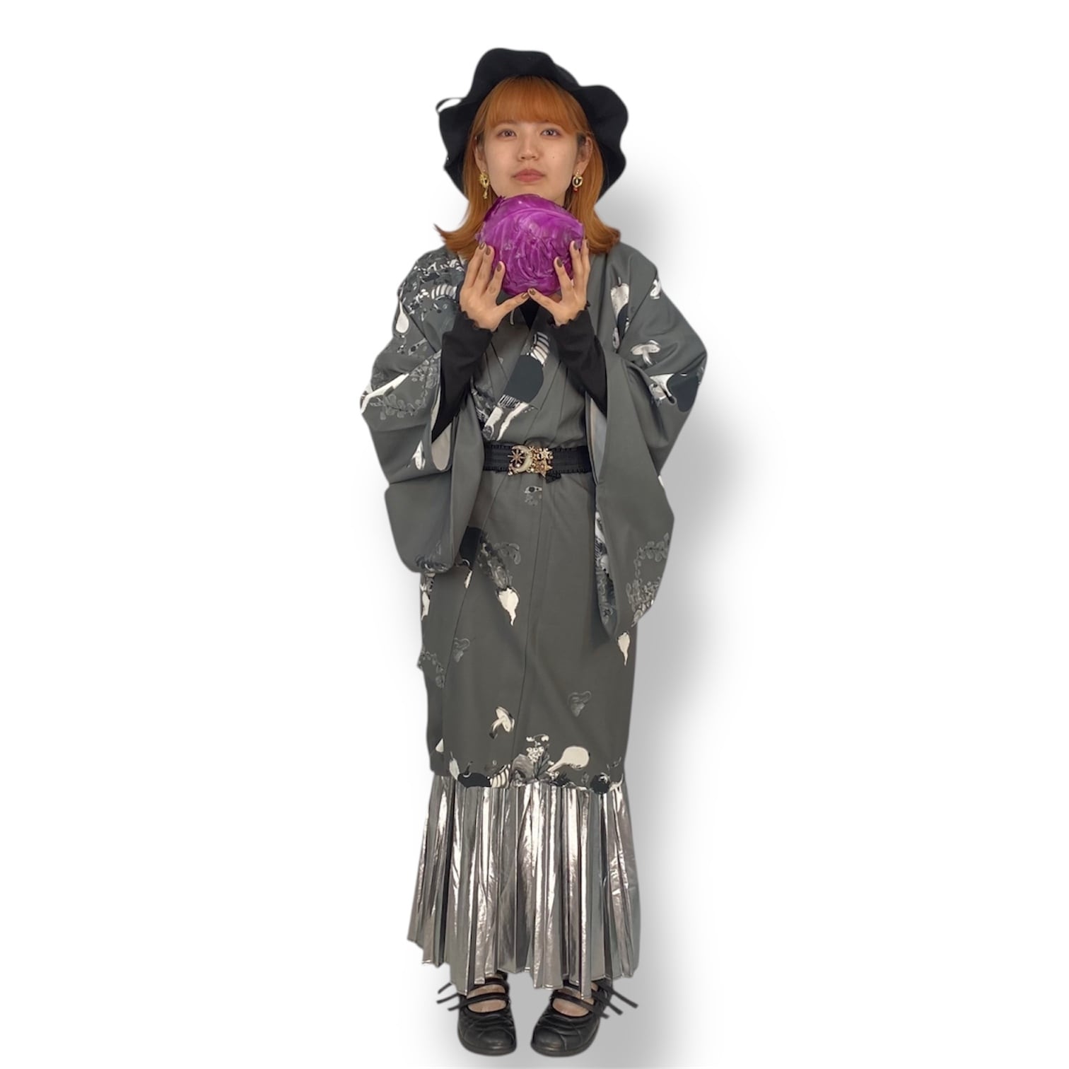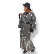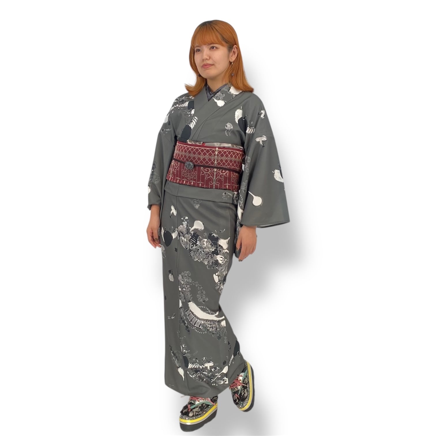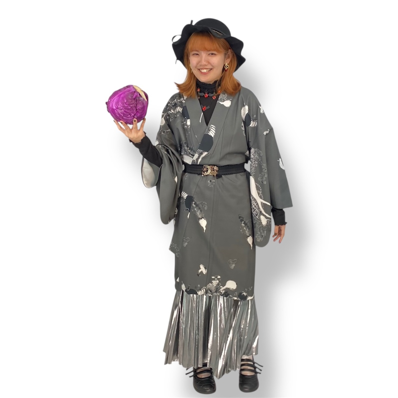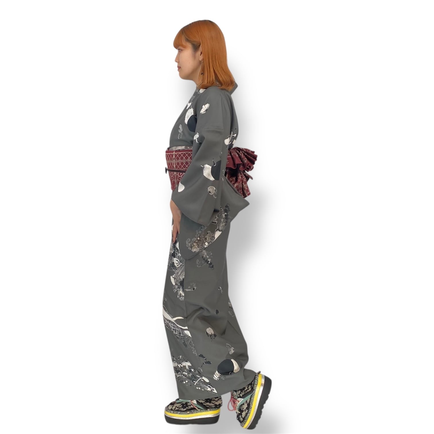 洒落袋帯でも、半巾帯でも名古屋帯でも兵児帯でも、さらには帯をしなくても。オシャレをしたい時に気楽に羽織れるキモノとして制作をしております。