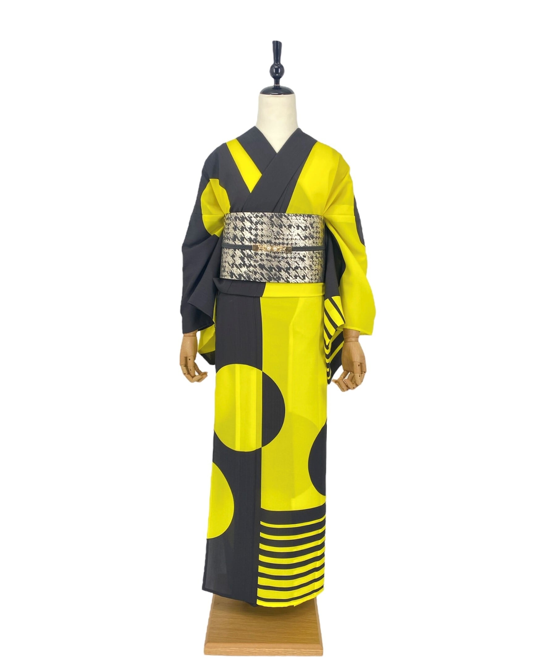 JUNKO KOSHINO浴衣 レディース ポリエステル(セオα) 洗える 仕立上がり 琳№14 黄黒